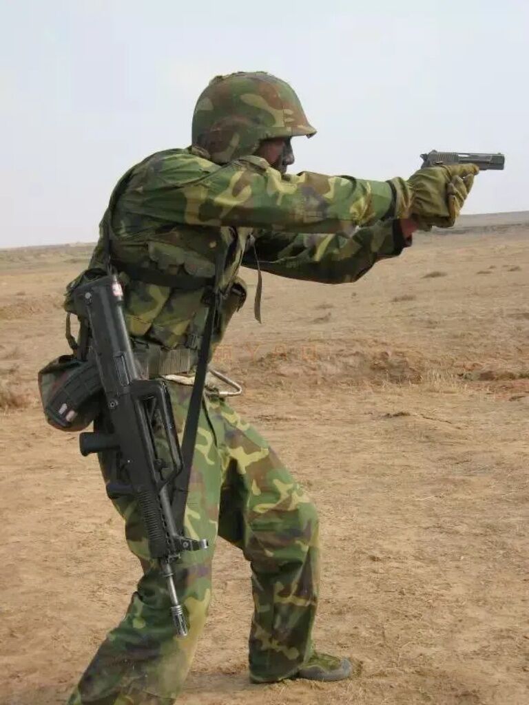 2001年北京军区派人参加爱尔纳·突击比赛时的照片,这一年是5.8mm步枪和92式9mm手枪初次参加此比赛。
