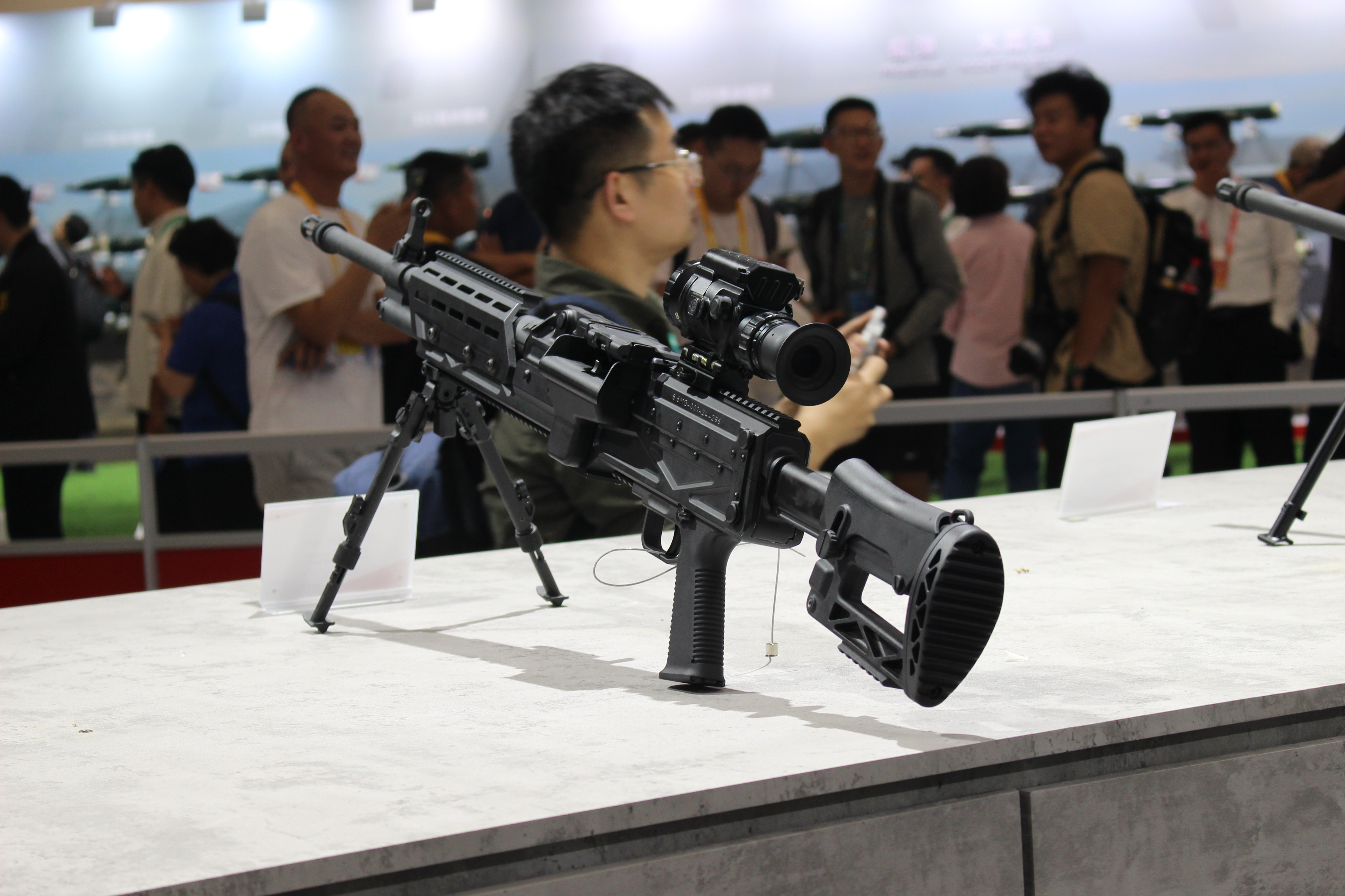 8.6mm口径(即.338)通用机枪的传闻其实一直有,不过在2024年珠海航展上首次展出后,得以证实它的存在。目前该枪的相关信息不多,机匣上也没有暂时型号名称,但从展出样品来看,结构原理与QJY201通用机枪相近,所以应该也是与QJY89式重机枪相近的管退与导气混合的自动方式。无独有偶,美国的SIG MG338和RM338也同样采用了类似的混合动力。