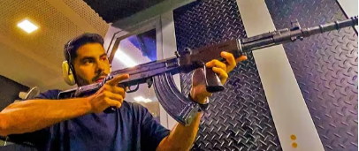 同时安装了下挂榴弹发射器与枪榴弹发射杯的81-1