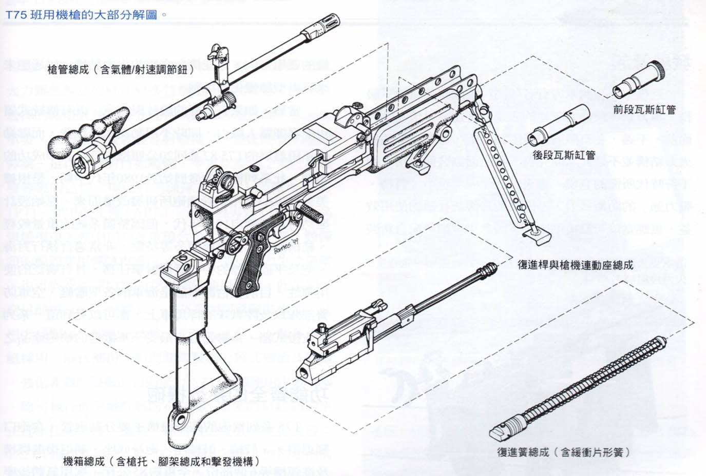 在机械结构上,T75机枪与FN Minimi主要区别有: