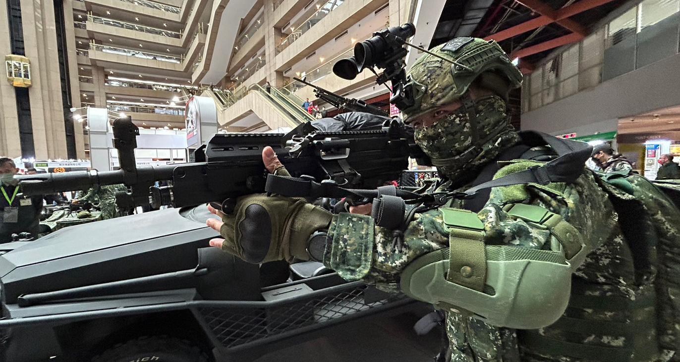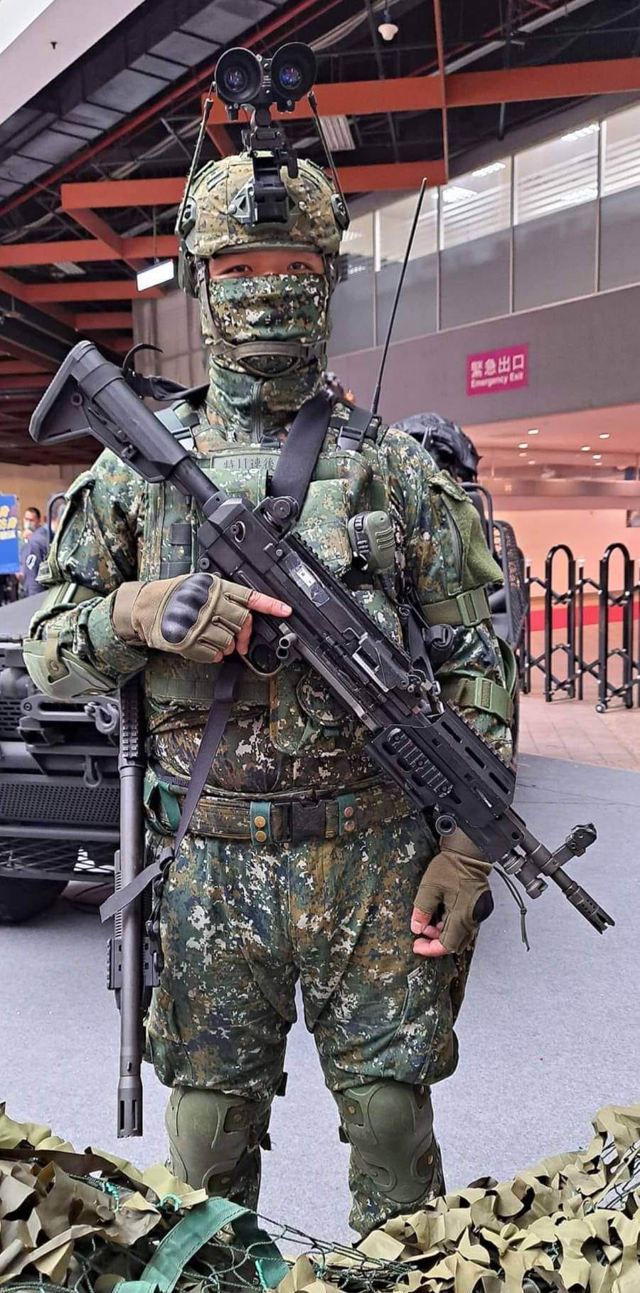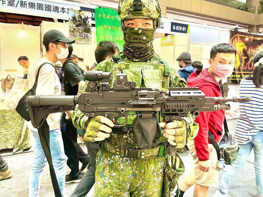 台湾陆军特种部队在2024年高雄的动漫祭中携带T75 SFAW机枪进行防务宣传