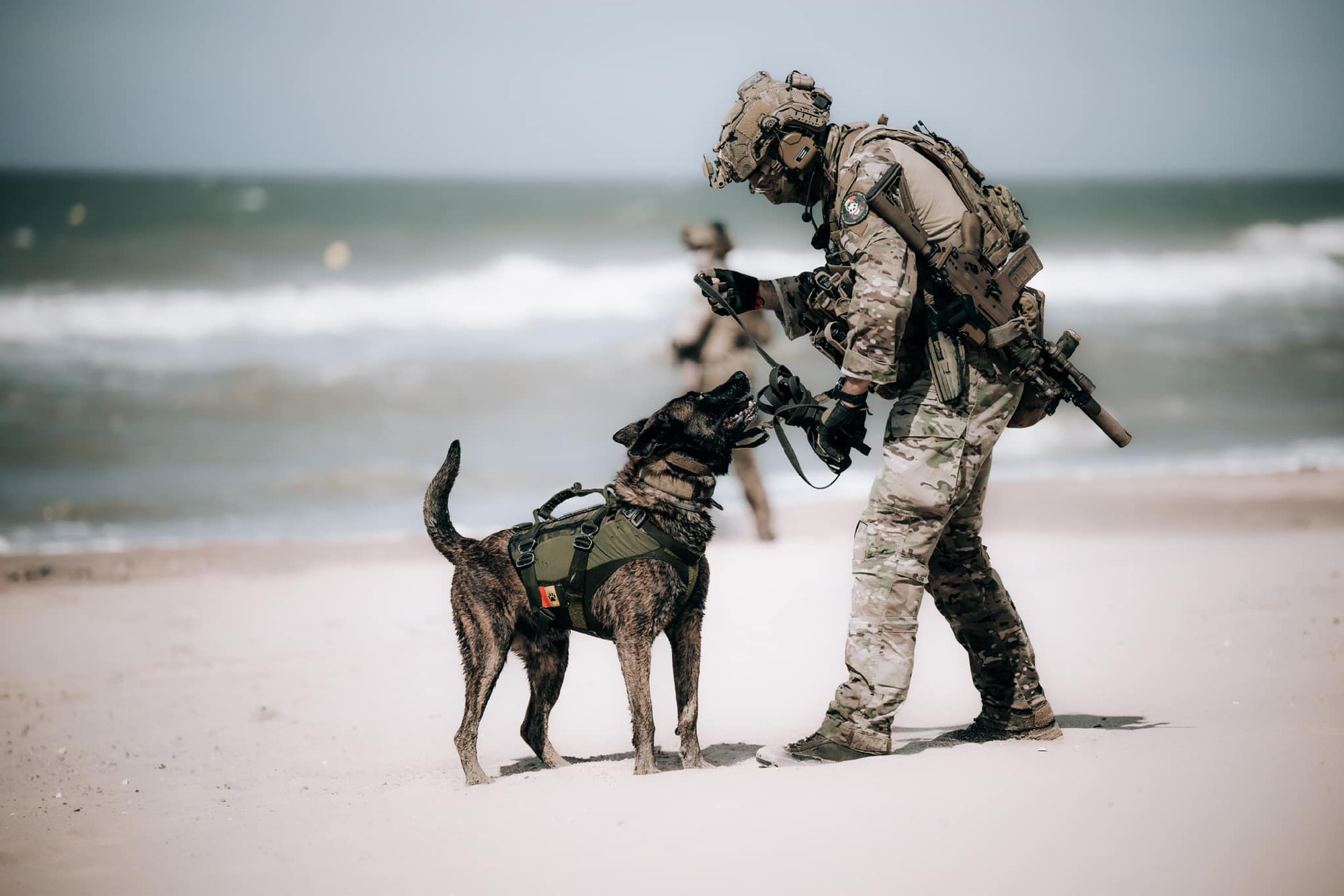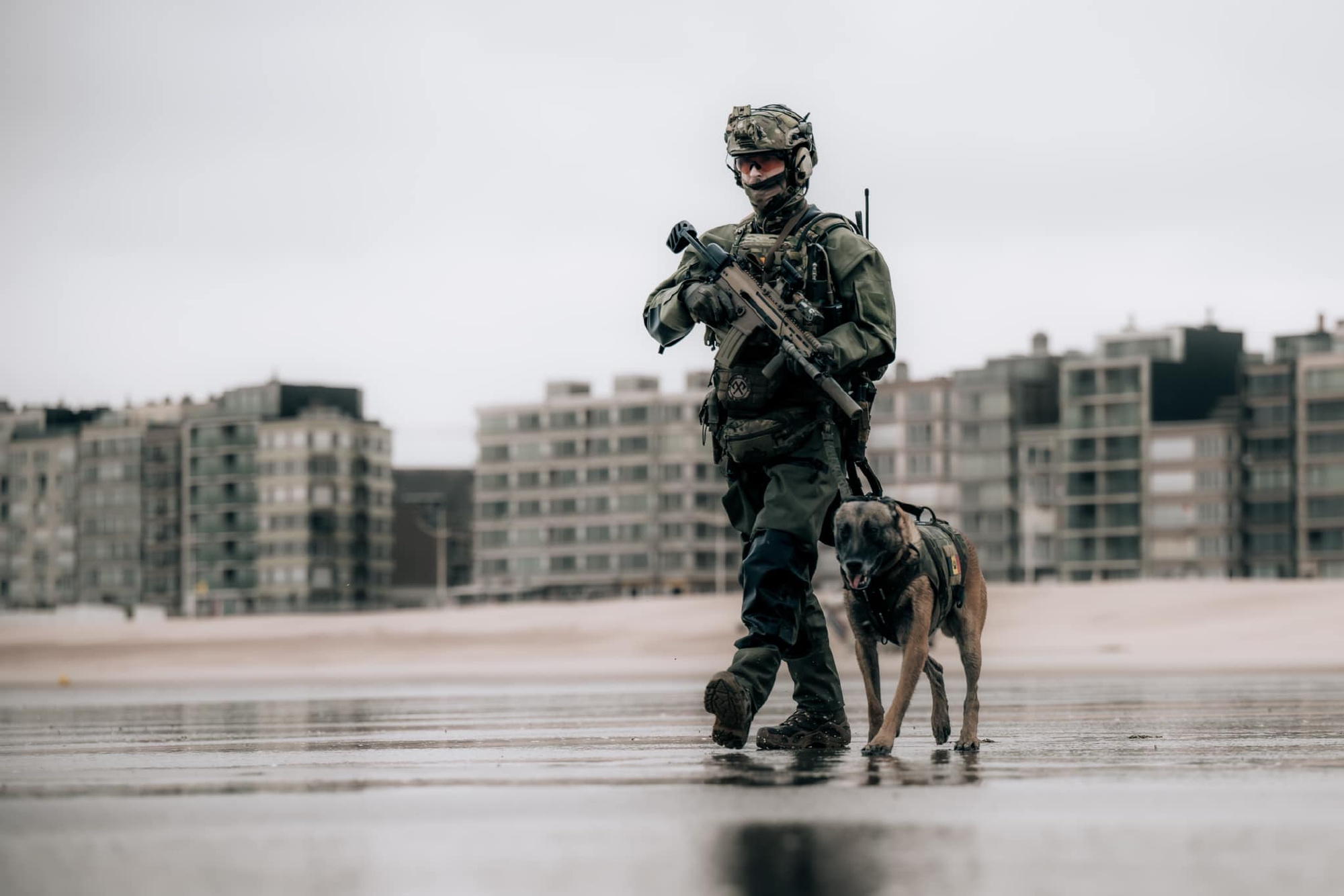 装备SCAR-L,2020年3月初在街头巡逻以执行保持社交距离(封城的另类说法)的比利时军队