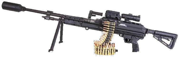 不过问题的关键也是弹药。.338 NM弹的重量(702格令/45.5克)是7.62 NATO弹(370格令/24克)的两倍,而LWMMG弹链链节(8克)的重量也是M13链节(4克)的两倍。.338 NM弹的尺寸也比较大,随枪的一个容纳50发弹链的软式弹袋就已经比M60、Mk48或M240的100发弹链袋要大,而且尺寸接近于Mk48的200发弹链袋。这样的尺寸和重量,也限制了LWMMG的弹药携带数量。