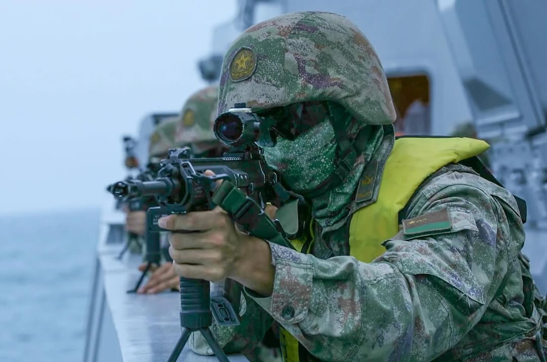 2021年海军陆战队的一张照片,图中从左到右分别为:QBZ192、QCQ171、QBZ192、QJB201和QBU191