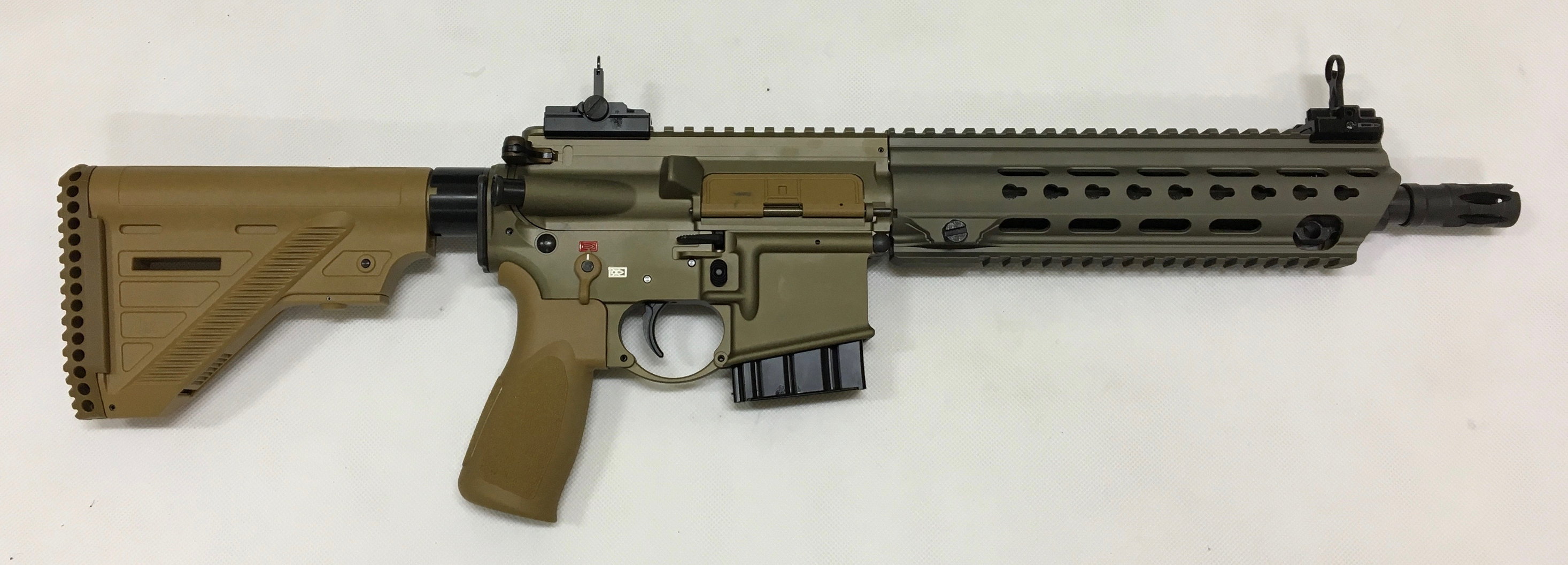 同样是加装消声器的HK416A7,但这一把是安装了A5的握把,及使用旧的HK416钢弹匣