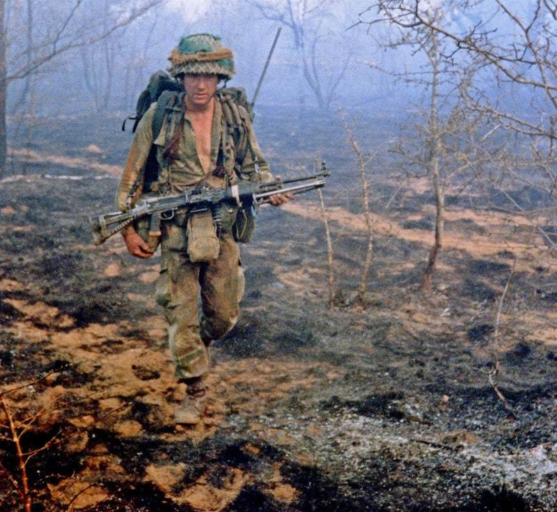 无独有偶,在罗得西亚战争中,也有些南非特种兵把缴获的RPD截短枪管使用。原本南非的制式机枪虽然是FN MAG,但对于一些渗透敌后的侦察部队来说,RPD更轻便,同样的负重下可携带更多的弹药——或者反过来说携带同样的弹药时身上负重更少可以跑得更快;另一方面,这些只有数人的小规模侦察部队会尽量避免与敌人的大部队接触,一旦发生交战,也大多是近距离内的突然遭遇,这种距离下,FN MAG的远射程优势并不能得以发挥,而RPD完全可以满足在这种距离下的交火;当然,还可以直接使用缴获的敌军弹药。所以不少侦察部队都会把缴获的RPD和屯积起来的弹药用于敌后渗透行动。在这种需求下,也有一些人参考了海豹在越战中的“撤退机枪”的做法,把RPD的枪管截短。(事实上,当时就有不少外国雇佣兵参与到罗得西亚战争中,包括不少美国的退役特种兵)