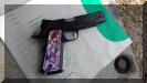 LAPD SWAT在2009年开放日上展出的1911手枪,橙色握把片的是COLT旧枪,黑色的就是KIMBER TLE II