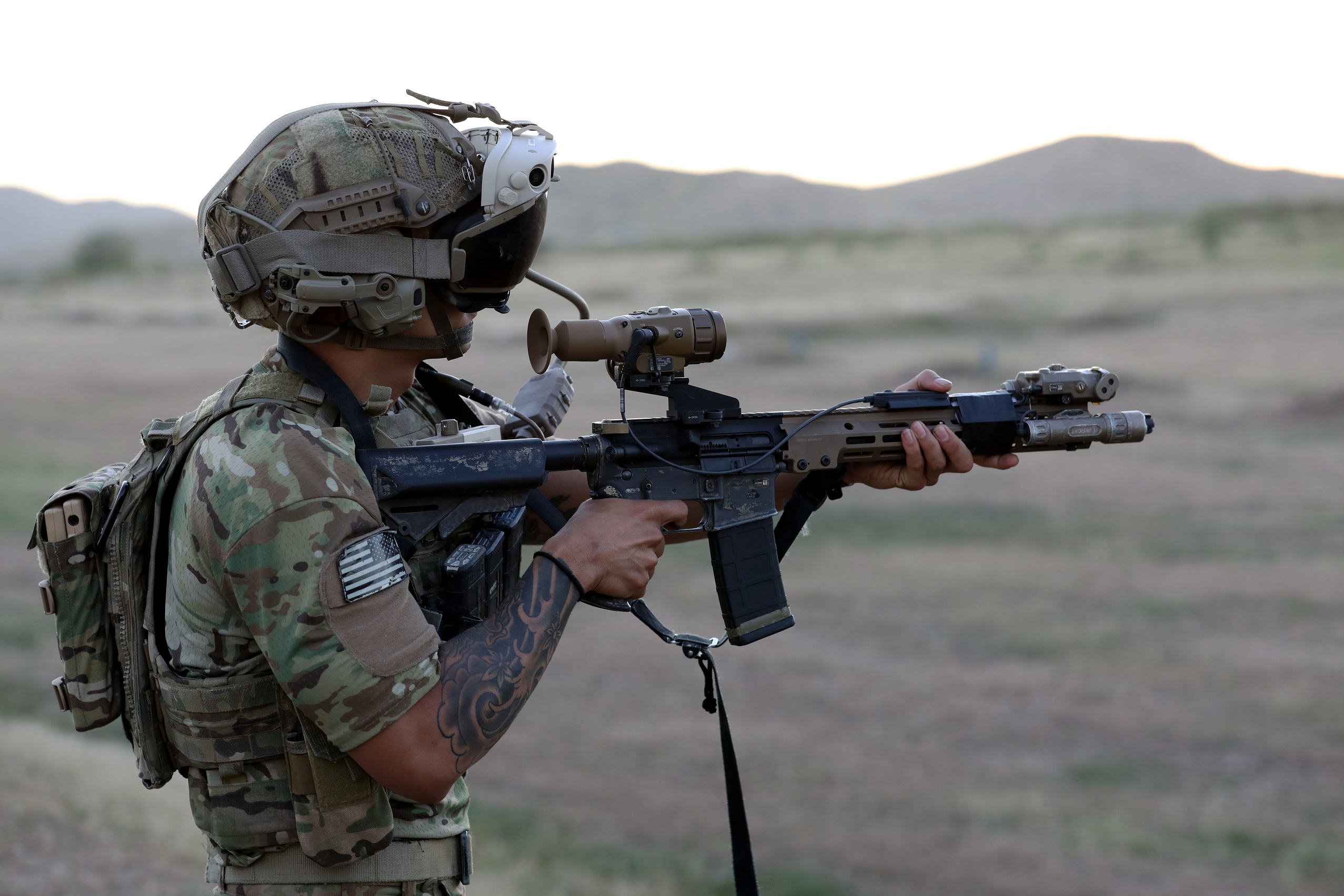 2019年10月18日,美国陆军第3特种大部在加州棕榈市的海军陆战队空中地面作战中心(MCAGCC)的训练场参加的联合战术演练中所使用的M4A1已经更换了URG-I